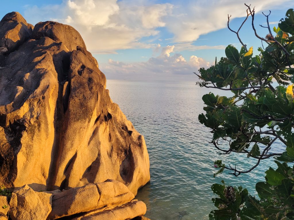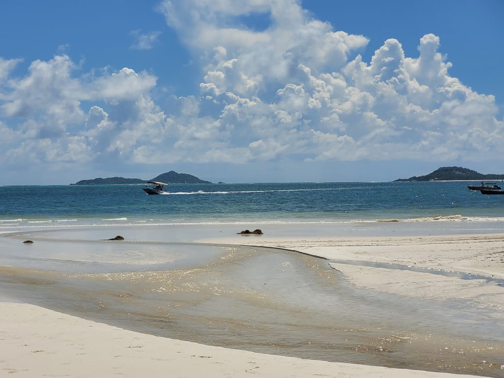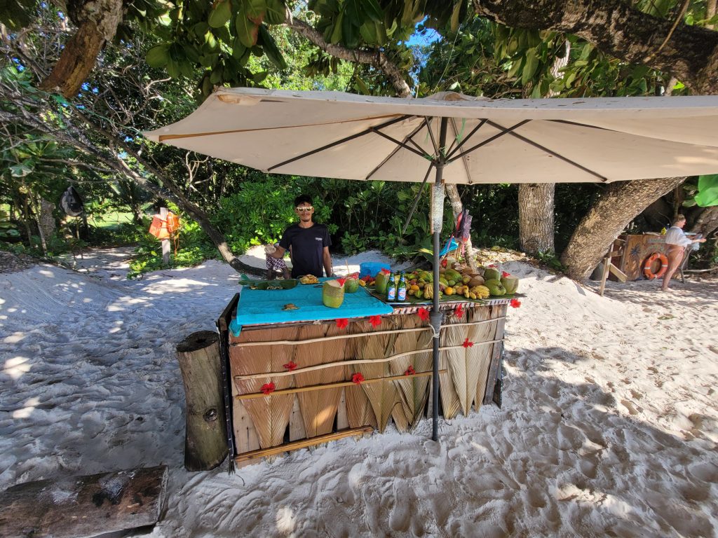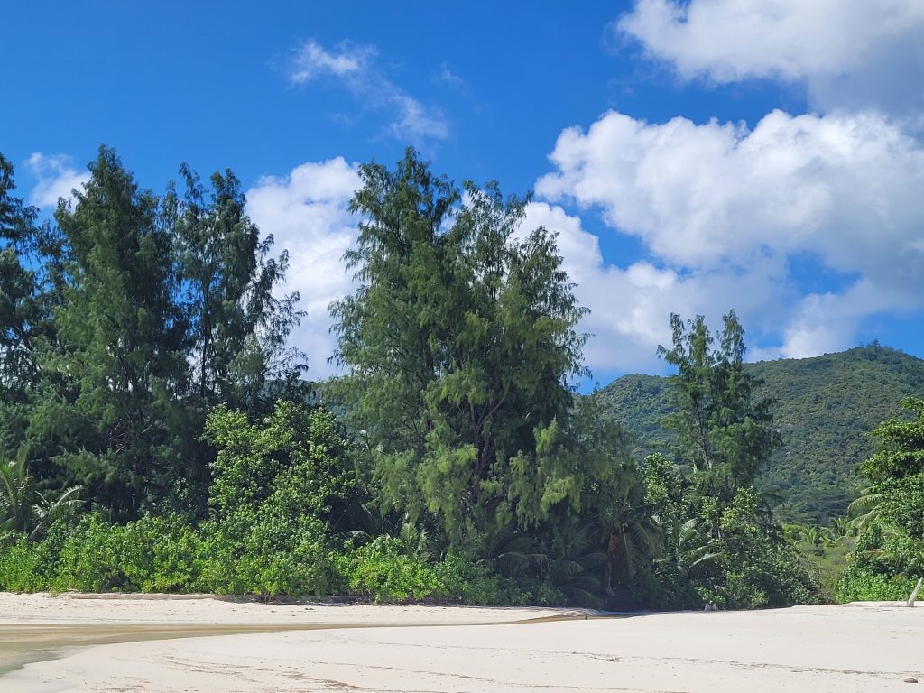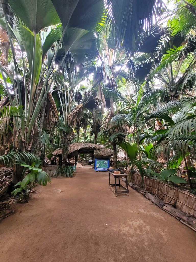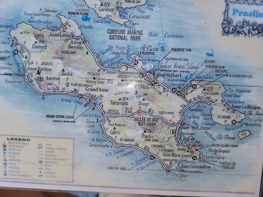 Nach einem wunderbaren DinnerUnser Supermarkt, der erstaunlicherweise fast alles hatte, was wir brauchtenGrand Anse – der Name ist Programm – der grosse StrandEingang zur bekanntesten Sehenswürdigkeit auf Praslin, dem Vallée de Mai, Heimat der berühmten Coco de Mer und den schwarzen Papageien.